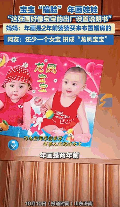之后她把孩子和年画同框的照片拍下来,发到家群里,丈夫看了也觉得没法相信,还开玩笑说:“这不会是提前把宝宝模样给定下来了吧?”