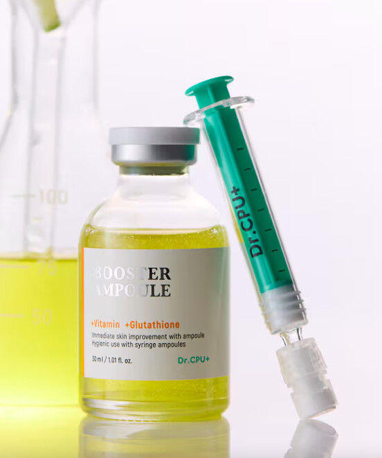 首先介绍的可说是近期DAISO保养品中的超热卖产品-由Dr. CPU+推出的安瓶(Booster Ampoule +Vitamin +Glutathione/닥터씨피유 미백바이탈 부스터앰플),其中添加了维他命C及穀胱甘肽的黄色安瓶,具有美白效果,是系列产品中最受欢迎的品项。