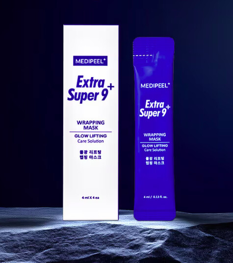 这款由MEDIPEEL推出的水光撕拉面膜(Glow Lifting Wrapping Mask/메디필 엑스트라 슈퍼 9 플러스 물광 리프팅 랩핑 마스크)和先前介绍过的黑头粉刺皮脂软化调理液都是属于Extra Super 9+系列产品。